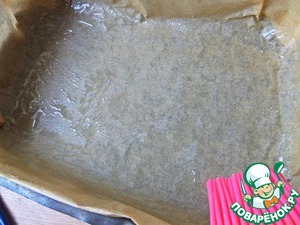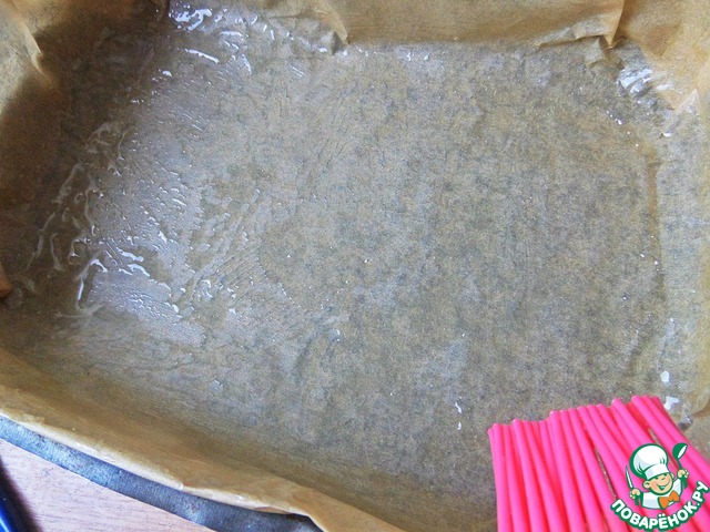 Форму 16 см на 23 см застелить пергаментом и смазать маслом без запаха.
