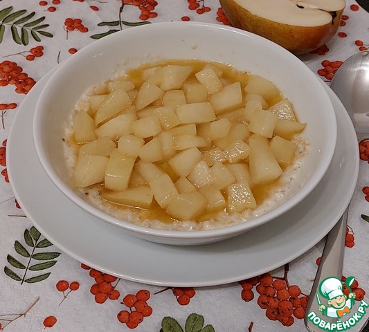 В готовую кашу положить грушу, полить мёдом и подавать.