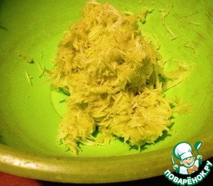 • Кабачок вымыть, обсушить, натереть на тёрке. Сыр натереть также на тёрке.