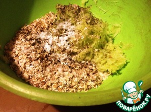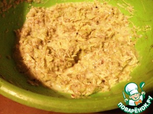 • Смешать кабачок, сыр, прованские травы, соль, хлопья, яйцо и пахту. Дать постоять минут двадцать.