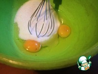 Яйца взбить с сахаром. Изюм смешать с 2 ст л муки |