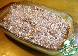 В форму, смазанную маслом выложить тесто. Сверху посыпать штрейзелем. Поставить в разогретую духовку. |