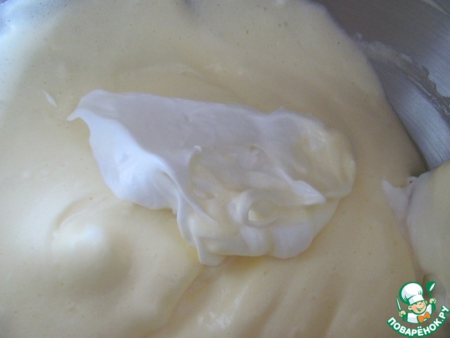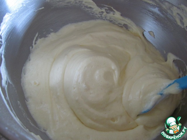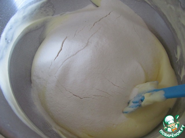 Перемешиваем аккуратно методом складывания. Получается очень воздушное тесто.