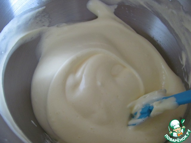 Взбиваем до побеления массы и увеличения в объеме в 2.5-3 раза.