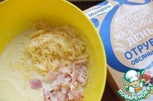 [+5]Не добавляла отруби, просто увеличила количество муки и заменила бекон на сосиски (что было в холодильнике).