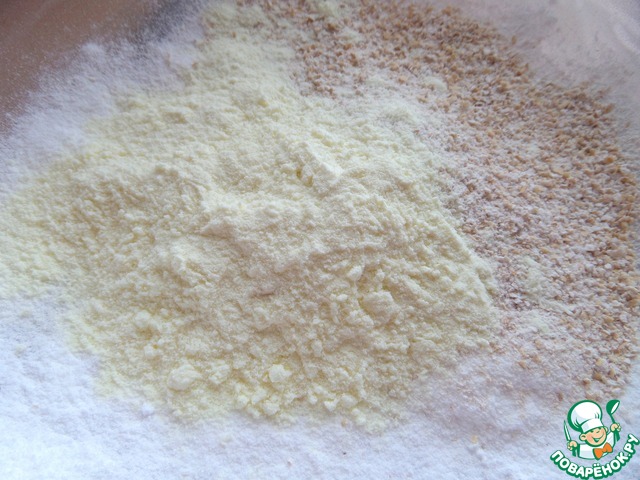 Смешать отруби с сахарной пудрой, которую тоже можно приготовить на кофемолке.