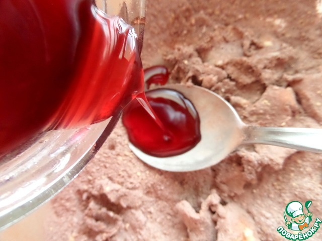 Для аромата я добавила малиновый сироп. Количество может быть разное. Сироп даёт влажность "тесту", возможно хватит и одной ложки.