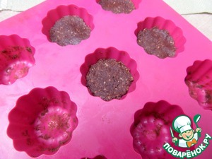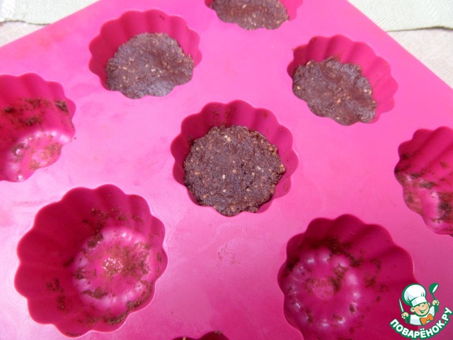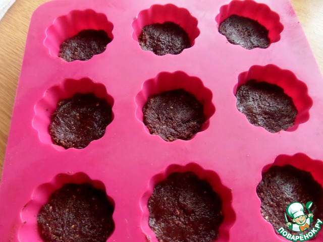 Вдавить по кусочку теста в ячейки для конфет или для мини маффинов. Если нет формочек, лепим шарики или трюфеля ручной работы.
