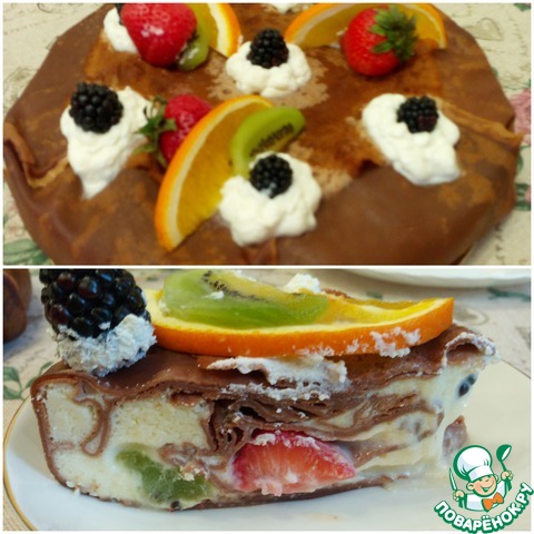 Украшаем по своему желанию. Я украсила блином, взбитыми сливками и фруктами.