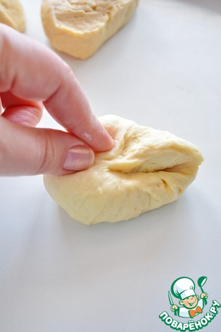 Каждый кусочек разомните в лепешечку и сформируйте шарик, подгибая края к центру -