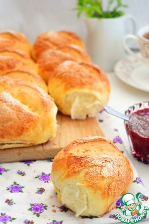 Воздушные, пышные булочки к утреннему чаю. Текстура теста почти невесомая, за счет добавления смолотых рисовых хлопьев.