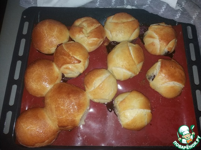 Разделите тесто на кусочки. У меня вышло 12 булочек.