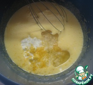 Влить йогурт и растительное масло. Добавить лимонную цедру. Перемешать.