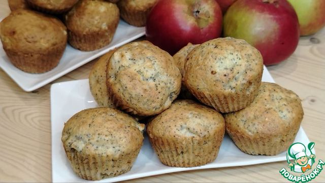 Приглашаю всех на чаепитие с нежными, сладкими кексами с кусочками сочных яблок в тесте, маком и лимонной цедрой!