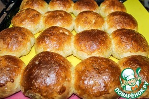 Наши булочки подошли, смазываем их взбитым яйцом и выпекаем 20 минут при 180С.