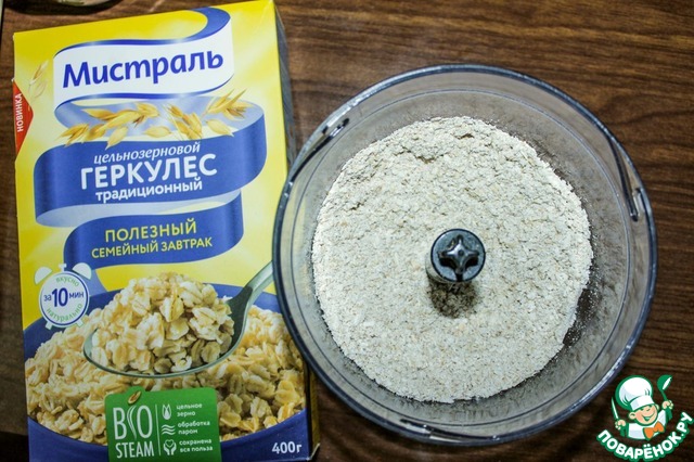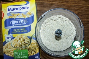 Овсяные хлопья высыпаем в чашу блендера и пробиваем.