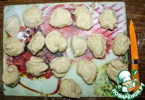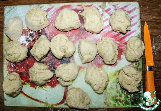 Разделываем тесто на кусочки по 70г. У меня вышло 17 кусочков