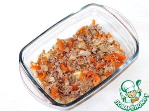 Смесь хлопьев с овощами и фаршем - это вкусное и сытное блюдо. Его можно приготовить на завтрак, на обед и на ужин. Чтобы уменьшить время готовки утром, надо вечером приготовить заготовку, а утром запечь.