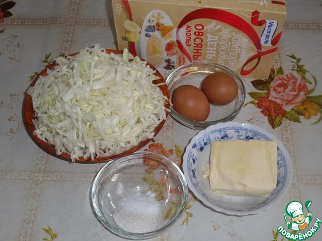 Ингредиенты для «Овсяный заливной пирог с капустой»: