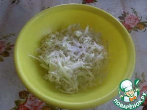 Подготавливаем продукты. Капусту мелко нарезаем. Включаем духовку.