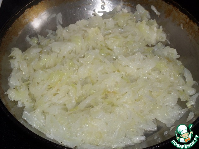 В разогретую сковороду налить растительное масло и выложить капусту. Обжаривать 7-10 минут.