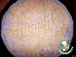 Сверху вылить нашу сырно-молочную смесь с зеленью.