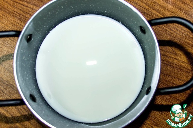 В маленькую кастрюлю наливаем молоко и доводим до кипения.