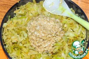 Готовую сырную кашку добавляем в капусту, перемешиваем.