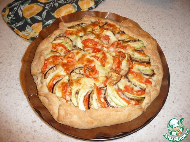 Второй, внутренний круг образуем, выкладывая по очереди кружочки помидор, баклажана и моцареллы.