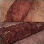 Вот через сутки переупаковываю, видите сколько влаги мясо отдало.