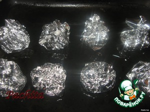 Из фольги нарезать квадраты размером чуть больше,чем размер отбивных.