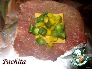 Запечeное отбивное мясо с сочной начинкой из кукурузы, стручковой фасоли и сыра. Настоящее удовольствие!