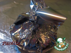 Аккуратно поднимаем края мяса вместе с фольгой,формируя "мешочек".