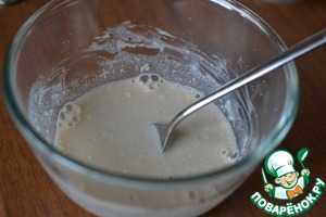 В миске смешать 4 ст. ложки молока, дрожжи, 1 чайную ложку сахара и 1 столовую ложку муки.