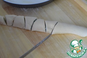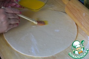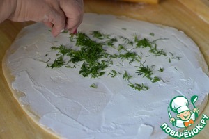 50 грамм сыра Филадельфия нанести на смазанное тесто.