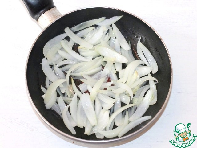 4. Приготовим фарш. Очистите и порежьте репчатый лук. На разогретом растительном масле (1 ст. л.) обжарьте его до прозрачности.
