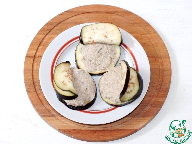 11. В каждый баклажанный "кармашек" положите по 1 ч. л. фарша.