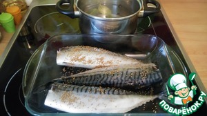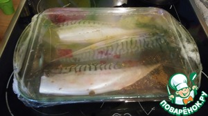 • Складываем в емкость в которой будем засаливать нашу рыбку (у меня стеклянная форма можно использовать банку)