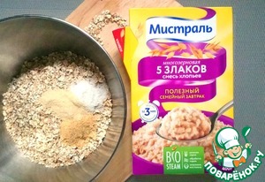 - Хлопья злаковые ("Смесь хлопьев 5 злаков многозерновая" от Мистраль) — 2 стак.