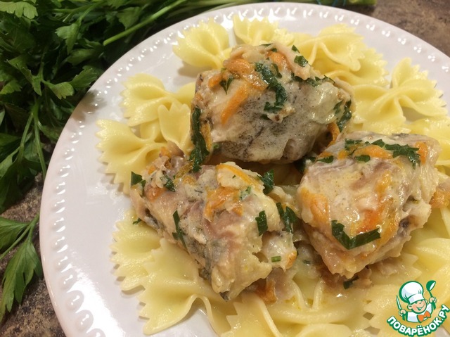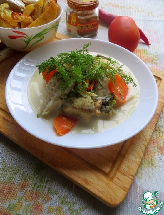 Рецепт «Минтай в сливочно-овощном соусе»: