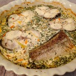 Т.к. с рыбой я в целом не дружу, то в данном контексте (300 гр минтая) мое филе после запекания просто плавало в соусе - практически в нем растворившись/развалившись. Т.е. у меня поучился соус с минтаем, а не наоборот. Но в целом, рецепт как-нибудь повторю, но с условием усовершенствования рецепта в виде увеличения количества рыбы, а потом и с треской.