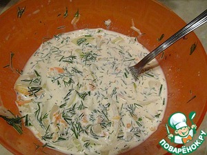 Лук нарезать четверть кольцам, морковь натереть, чеснок натереть на мелкой тёрке, укроп мелко нашинковать, добавить горчицу.
