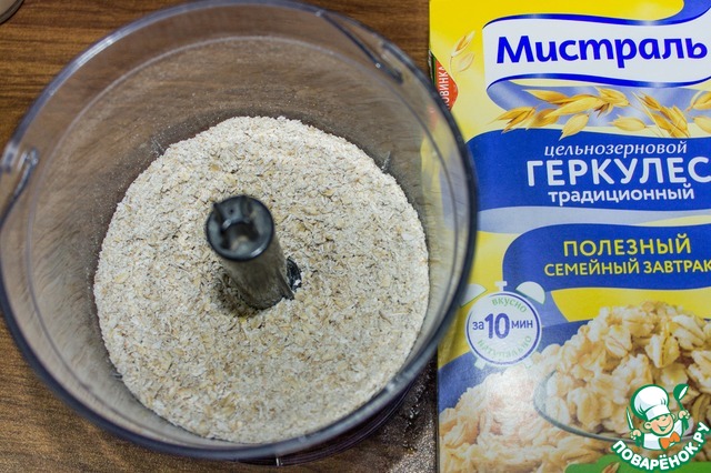 Хлопья высыпаем в чашу блендера и пробиваем в крупку.
