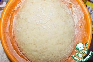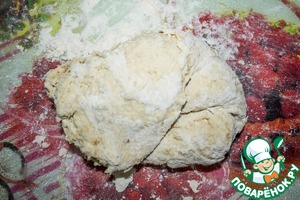 Выкладываем тесто на подпыленную мукой доску и тщательно вымешиваем.