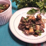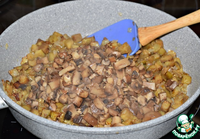 Я предлагаю вариант с шампиньонами, но как же вкусна эта закуска с лесными грибами... |