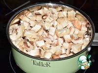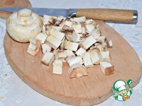 Шампиньоны тщательно протереть влажной салфеткой. Нарезать кусочками среднего размера.