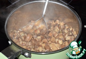 Положить грибы в сотейник, влить воду и тушить, периодически помешивая, на среднем огне, пока вся жидкость не выпарится. |