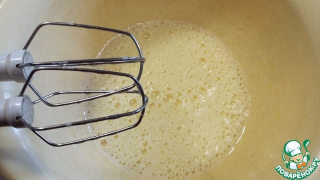 Взбиваем яйца с солью и сахаром. Добавляем разрыхлитель и корицу, перемешиваем.