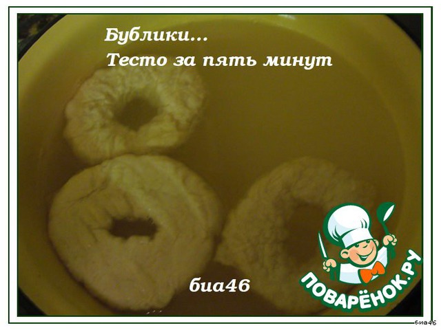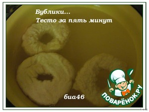 Выкладываем подошедшие бублики в кипящую воду и варим по 1 минуте с каждой стороны.