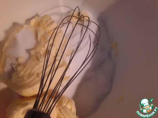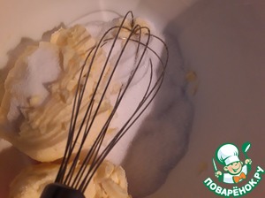 • Соединяем мягкий маргарин с сахаром, ванильным сахаром и всё хорошо взбиваем миксером.